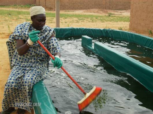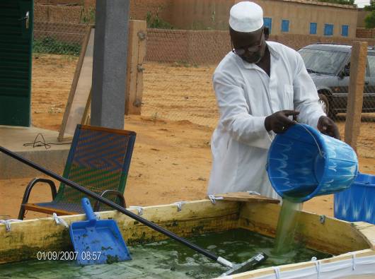 Le site a été choisi, l’électricité et l’eau apportées, les bassins, latrines et bâtiments construits, et la spiruline ensemencée dans des bassins. Une personne est chargée de remuer les bassines de spiruline toutes les heures tous les jours. La spiruline a été mise en culture au début de l’’été 2007 et la production a commencé. Le personnel chargé de soigner les enfants mal-nutris à Dogon Doutchi apprécie beaucoup l’efficacité de la spiruline qui raccourcit le temps d’hospitalisation des enfants atteints de malnutrition, qui sont très nombreux au Niger.