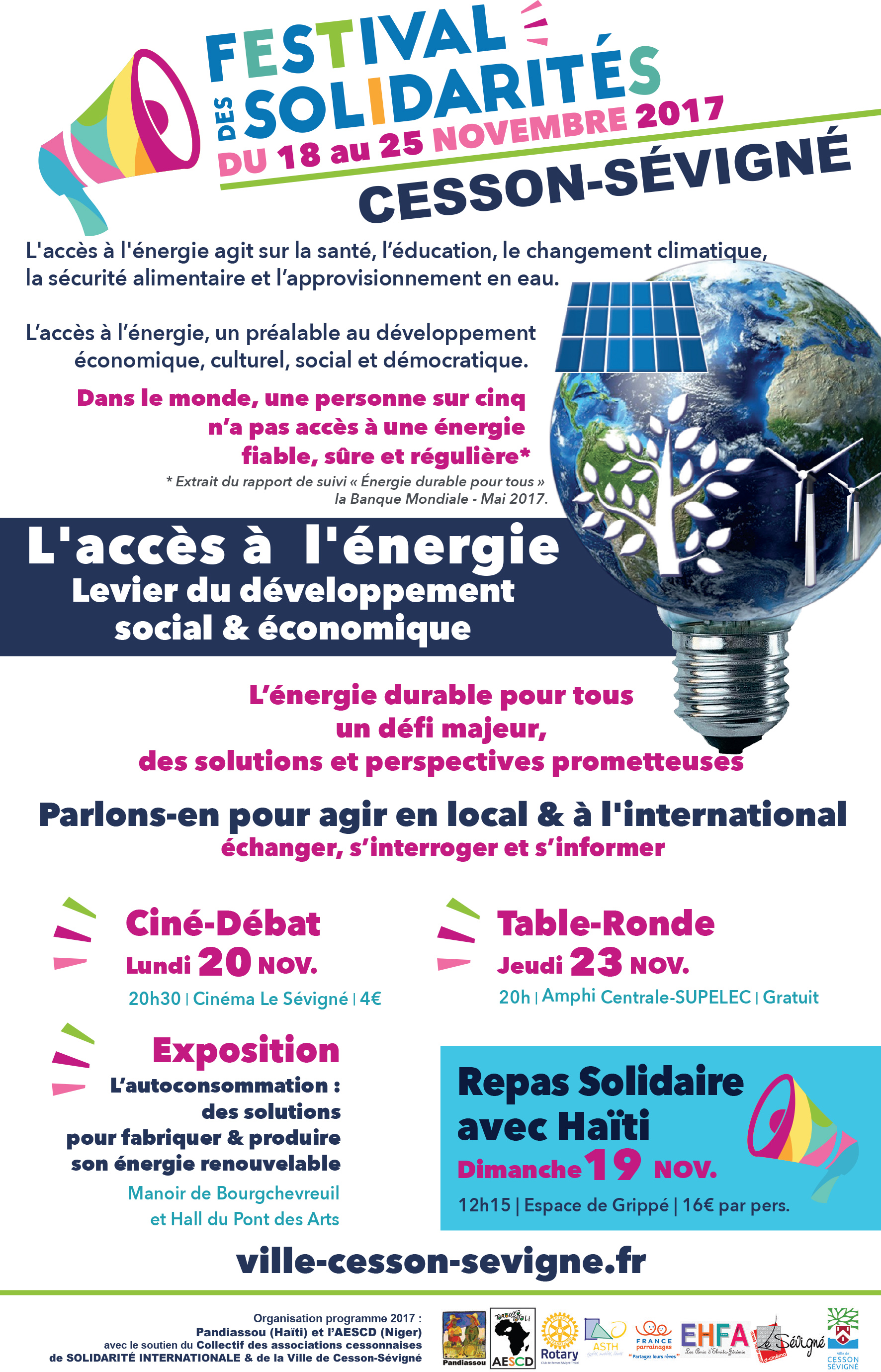 - Présentation des actions des associations cessonnaises de solidarité internationale, Hall du Pont des Arts (Cesson-Sévigné) du 25 novembre au 3 décembre.