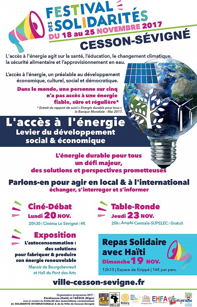 - Présentation des actions des associations cessonnaises de solidarité internationale, Hall du Pont des Arts (Cesson-Sévigné) du 17 novembre au 24 décembre.